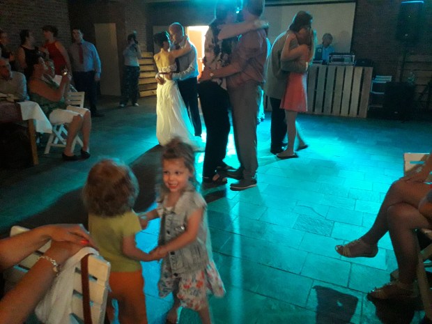 We werden uitgenodigd voor een superleuke, te gekke bruiloft van een mede-Gekke Mama – zen facebookgroepje waar ik verschillende superlieve vriendinnen heb mogen leren kennen. Pieter moest natuurlijk meteen de dansvloer op met zijn vriendinnetje Berthe. Die twee, dat wordt nog wat ooit. Let op mijn woorden.