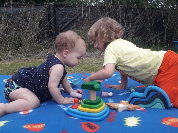 Samen spelen. Of ja, eerder naast elkaar door. Met een scheidsrechter erbij zodat ze niets steeds speelgoed van elkaar af zouden pakken. Maar dat zal ooit wel beteren zeker?