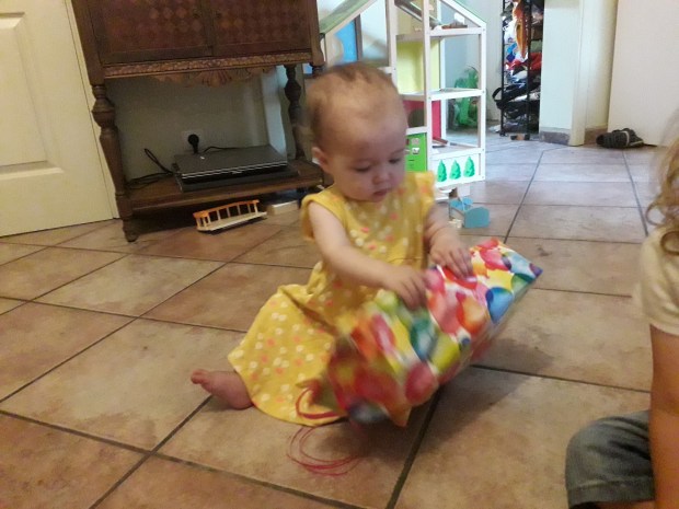 Lieve Lena was jarig. Daar horen natuurlijk cadeautjes bij. Uitpakken was nog een beetje moeilijk, gelukkig is er dan een grote broer die wil helpen!