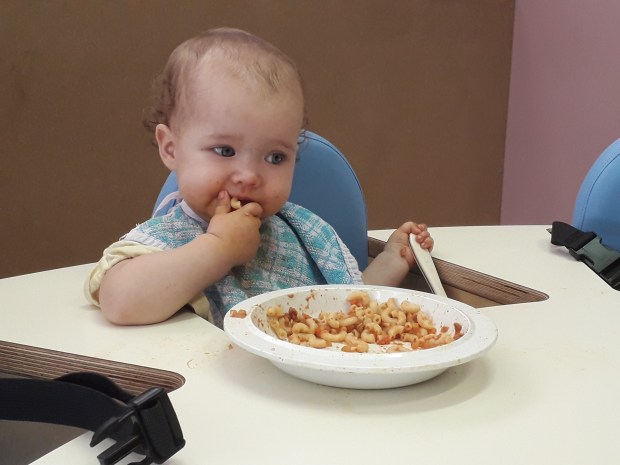 Ook in de crèche is het eten goedgekeurd. Alleen dat eten met een lepeltje he… Gelukkig weten we zeker dat dat nog wel goed komt. Ze is tenslotte nog maar net 1.