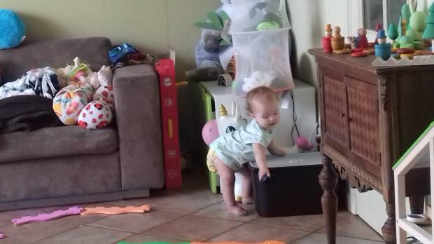 Even met je ogen knipperen en van die kleine baby schiet helemaal niks meer over. Ze trekt zich dus overal aan op. Stappen doet ze nog steeds niet (of ja, een paar wankele stapjes als je haar handjes vast hebt) maar heel – of eindelijk niet zo heel – stiekem vind ik dat niet erg. Laat haar nog maar eventjes mijn kleine baby zijn.
