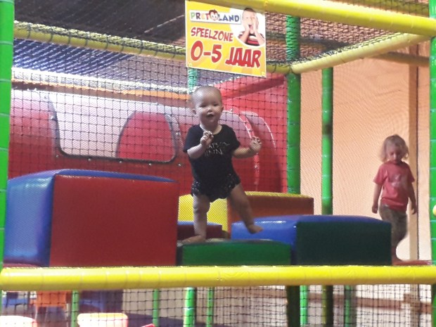 We gingen een paar uurtjes spelen bij Pretland Hasselt. Voor Lena de allereerste keer in een binnenspeeltuin, Pieter heeft het wel al vaker gedaan. Het was een erg warme dag, maar dat was alleen maar een voordeel. Omdat het zo warm was, was het enorm rustig en konden ze naar hartelust ontdekken zonder – vooral in Lena’s geval – overhoop te worden gelopen.