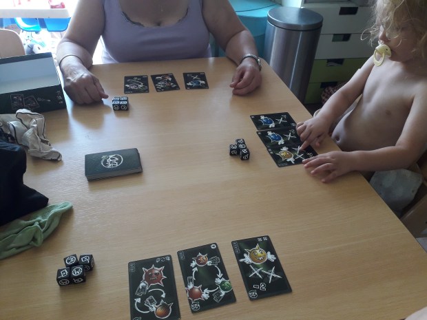 Een spelletjesnamiddag met omi. Erg gezellig, alleen redelijk lastig met 2 kindjes die oververmoeid waren en alle spelonderdelen wilden vastpakken. Na het te slapen leggen van Lena en het aanpassen van de manier van spelen op het niveau van Pieter konden we toch genieten van dit spel “Wazabi”. Heel leuk!