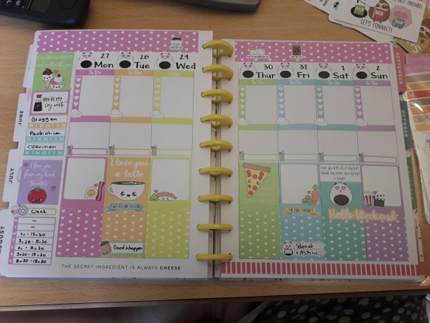 Ik maakte alvast mijn agenda startklaar voor aankomende week. Ik ben niet zeker of ik hier al ooit wat over gezegd heb, maar ik gebruik speciale stickers om elke week in een ander thema te versieren. Dit geeft me elke week een rustmomentje waarop ik m’n hoofd helemaal leeg kan maken. Op deze lay-out ben ik helemaal verliefd!