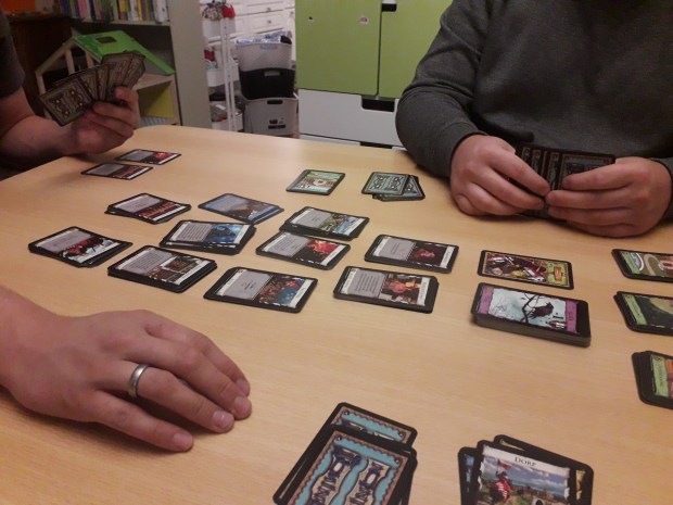 We kochten een nieuw spel een tijdje geleden. Dominion. Ook voor de internetvrije week speelden we al veel spelletjes, maar dit was de ideale gelegenheid om toch contact met anderen te onderhouden, alleen nu dus echt in gezelschap in plaats van via een scherm. Het spel is trouwens een echte aanrader als je van nadenken en strategieën houdt!
