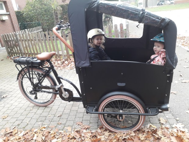 Onze bakfiets kwam aan! Met eeuwige dank aan mijn schoonmoeder voor dit prachtige cadeau. Hiermee zijn we toch een heel pak mobieler! Het is wel even wennen, dat gekke stuur, de 3 wielen, het elektrisch rijden, … . Maar echt enorm tof.