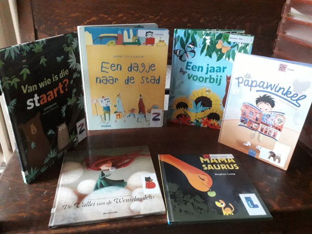 Op deze foto zie je de twee absolute favorieten van onze “bibliotheekboekenhaul”. “De papawinkel” en “Mamasaurus” hebben we ondertussen al zo vaak gelezen dat zowel hij als wij de tekst ongeveer vanbuiten kennen. Maar dat is alleen maar leuk. Zo komen we ook een beetje te weten wat Pieter echt leuk vind om over te lezen, welke boekjes we eventueel op het wenslijstje kunnen zetten en ook wat we een volgende keer kunnen meebrengen uit de bib als hij er zelf eens niet bij is.