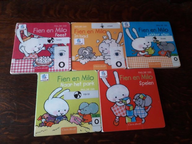 Ook voor Lena brachten we een aantal boekjes mee. Dit keer wel kartonnen boekjes, want ze is toch nog wat te klein om verhaaltjes te snappen, en met deze boekjes kan ze weinig verkeerd doen. (Ze “zelf doen” fase is begonnen, dus moet ze natuurlijk zelf door de boekjes kunnen bladeren.) En stiekem las Pieter deze ook hoor.