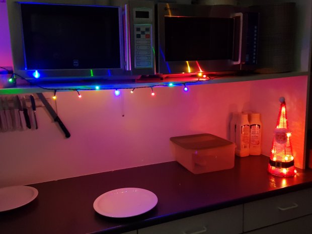 Stroomuitval op het werk? Dan steken we de kerstverlichting toch gewoon aan! Gezellig én functioneel.
