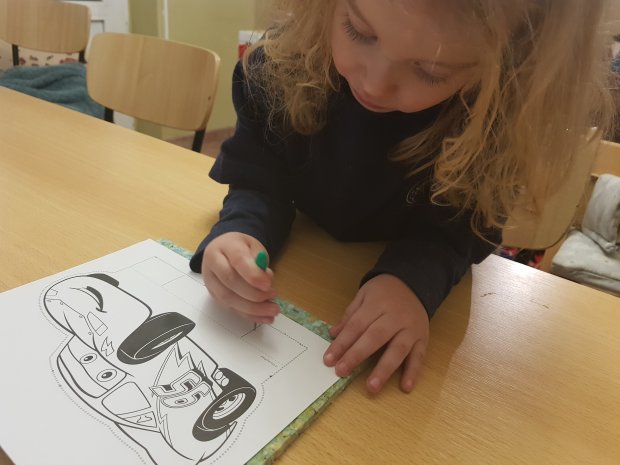 Ik vond dit dan ook het ideale moment om iets helemaal nieuw uit te proberen. Een tekening uitprikken met een ouderwetse prikblok! Als kind vond ik dit zelf een van de leukste dingen om te doen. Dat het tekeningen van Cars zijn was alleen maar een pluspunt, iets waardoor ik zeker was dat er interesse voor zou zijn.
