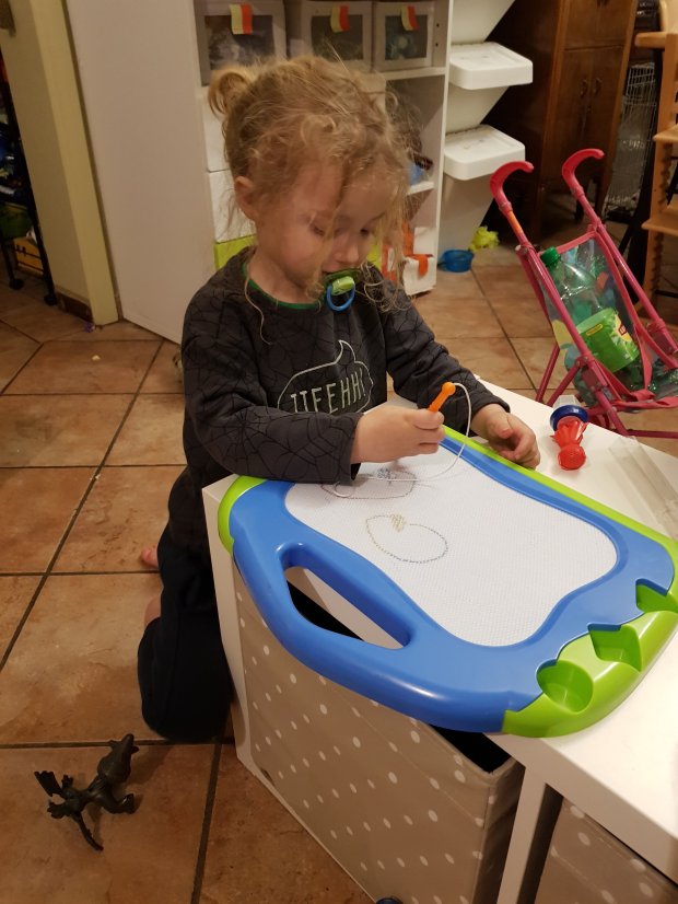 Uit het niets en na een periode zonder interesse in tekenen pakte Pieter opeens zijn tekenbord er weer bij. De ene na de andere tekening maakte hij voor ons. Ik ben blij dat hij toch weer interesse krijgt in creatievere dingen. Dan kunnen we de tv weer stilaan op de achtergrond krijgen.