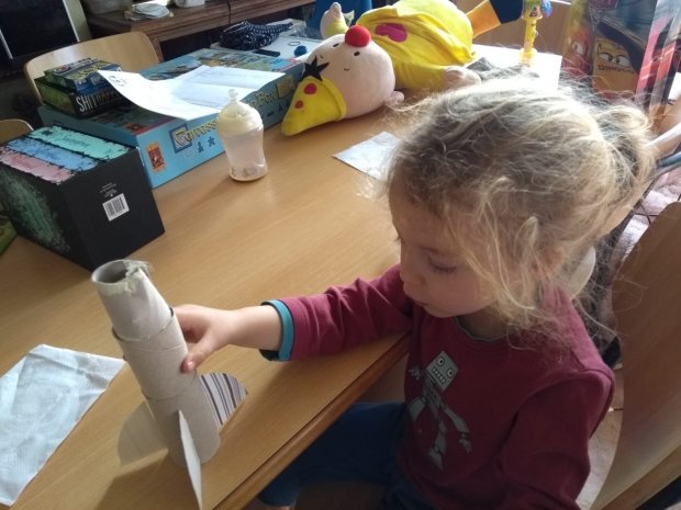 Knutselen! Zoals ik al zei ben ik enorm blij dat Pieter creatieve dingen weer leuker vind. Maar een raket bouwen is natuurlijk supercool. De raket ligt ondertussen is 3 verschillende stukjes uit elkaar van het intensieve spelen, maar dat is ok. Volgende keer maken we een nieuwe!