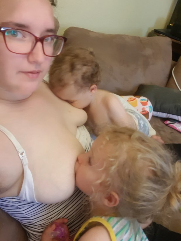 Pieter was klaar met titi drinken zei hij toen hij 3,5 was ongeveer. Maar heel af en toe wil hij toch nog een slokje. Eentje maar. En het toeval wilde dat we dat nu op camera kregen. Ik word hier best wel blij van. Let niet op Lena’s faceplant trouwens. Lena is … Lena.