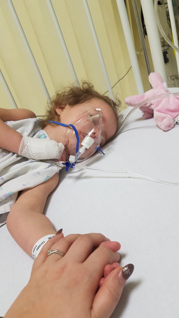 Lena sliep nog toen ik bij haar kwam. Wat ik wel fijn vond, aangezien ik niet wilde dat ze alleen zou moeten wakker worden. Dat is ze niet gewoon van thuis, laat staan in een vreemde omgeving. Maar na 10 minuten was ze nog steeds niet wakker. En na een half uur ook nog niet. Bijna 3 kwartier na de operatie kwam er dan toch een verpleegster kijken of ze Lena niet wakker kon krijgen door zachtjes aan haar te komen en tegen haar te praten. Dat lukte. En zoals de dokter voorspelde werd ze erg rustig wakker. Tot ze haar infuusje zag. Dat moest er dan ook meteen uit van haar. Om haar woorden kracht bij te zetten begon ze er redelijk snel al aan te trekken. De verpleegster kwam dan maar om haar medicatie nog snel via het infuus te geven alvorens dit te verwijderen.