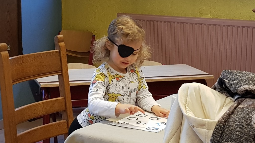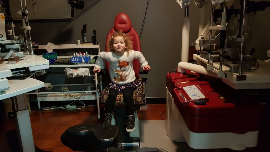 Afgelopen week konden we dan terecht bij de oogarts. We kozen voor een oogarts met een open inloopuur, ookal moesten we dan een toeslag betalen. Anders kwamen we op een wachtlijst van minstens 3 à 4 maanden terecht, en als je ongerust bent over je kindje voelt dat aan als een eeuwigheid, nietwaar? Gelukkig dus maar enkele dagen na het krijgen van de verwijsbrief al een consultatie kunnen strikken. Aangezien Pieter door omstandigheden nooit een CLB afspraak heeft gehad in de kleuterklas nam ik hem meteen ook maar mee, zodat ook zijn oogjes nagekeken konden worden.