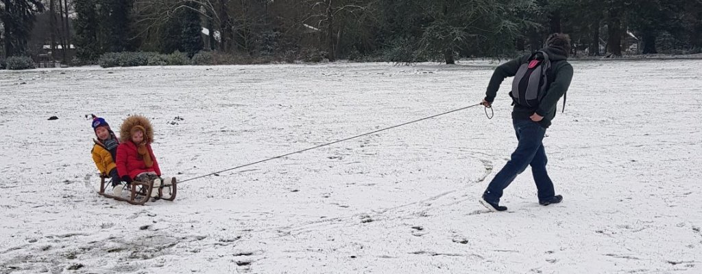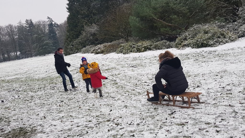 Zoals we allemaal hebben kunnen zien ligt er sinds het weekend sneeuw! Daar maakte mijn kindjes dankbaar gebruik van. Niets leuker dan in de sneeuw spelen natuurlijk. Toen we ook nog een uitnodiging kregen van een bevriend koppel om samen een wandeling te maken door de sneeuw én dat zij een slee hadden was het helemaal feest.