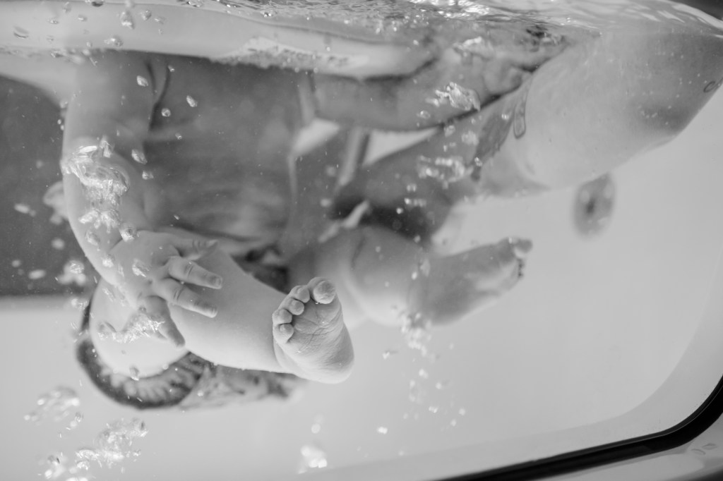Dan mocht Emmelie het bad in. En ik moet je zeggen, ze vond het helemaal niks. Afleiden en haar tutje hielpen ook niet. Daar moet ik aan toevoegen dat dat écht aan haar ligt en niet aan de ervaring op zich. De meeste baby’s vinden het helemaal geweldig, en vallen zelfs in slaap! Maar ik mocht haar zelfs niet loslaten. Na een borstpauze en een tweede poging huilde ze niet meer de hele tijd, zolang ik haar maar vast had. Ik merkte wel dat ze steeds meer ontspande. Nog een grote voetnoot is dat Emmelie het niet gewend is om in een groot bad te gaan. Thuis wassen we haar in de bademmer (ze is erg klein dus past hier nog heel goed in) of gaat ze tegen mama aan geplakt mee de douche in.