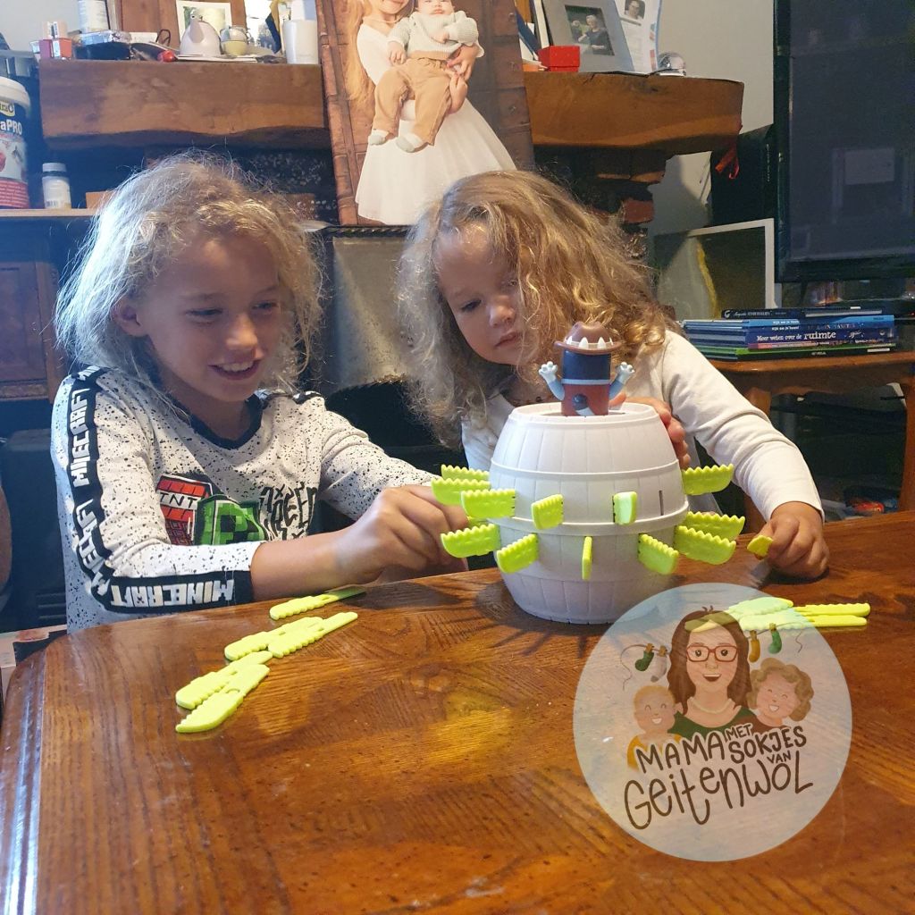 Een van de laatste nieuwe spelletjes bij ons thuis is de Popup versie van Bluey. We kennen allemaal wel de piraat die uit zijn vat springt wanneer hij met zwaarden doorboord wordt. In deze versie vallen krokodillen het vat van Bluey aan. Heerlijk nostalgisch en supersimpel in een hedendaags jasje.